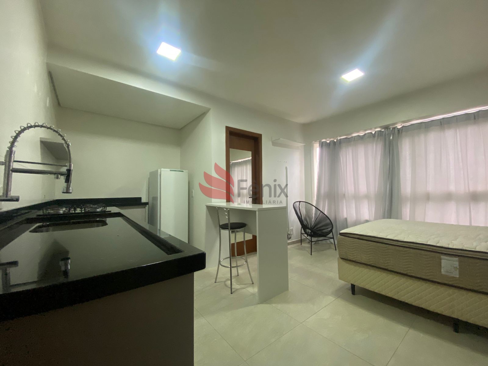 Interfone, Zelador, 1 Dormitório, Cozinha, 1 Banheiro, 1 Ar Condicionado, Piso porcelanato, Elevador, Gás Central, Mobiliada(o), Posição Solar norte, De Frente, Área privativa: 33,75 m², Área total: 33,75 m².Detalhes do Imóvel