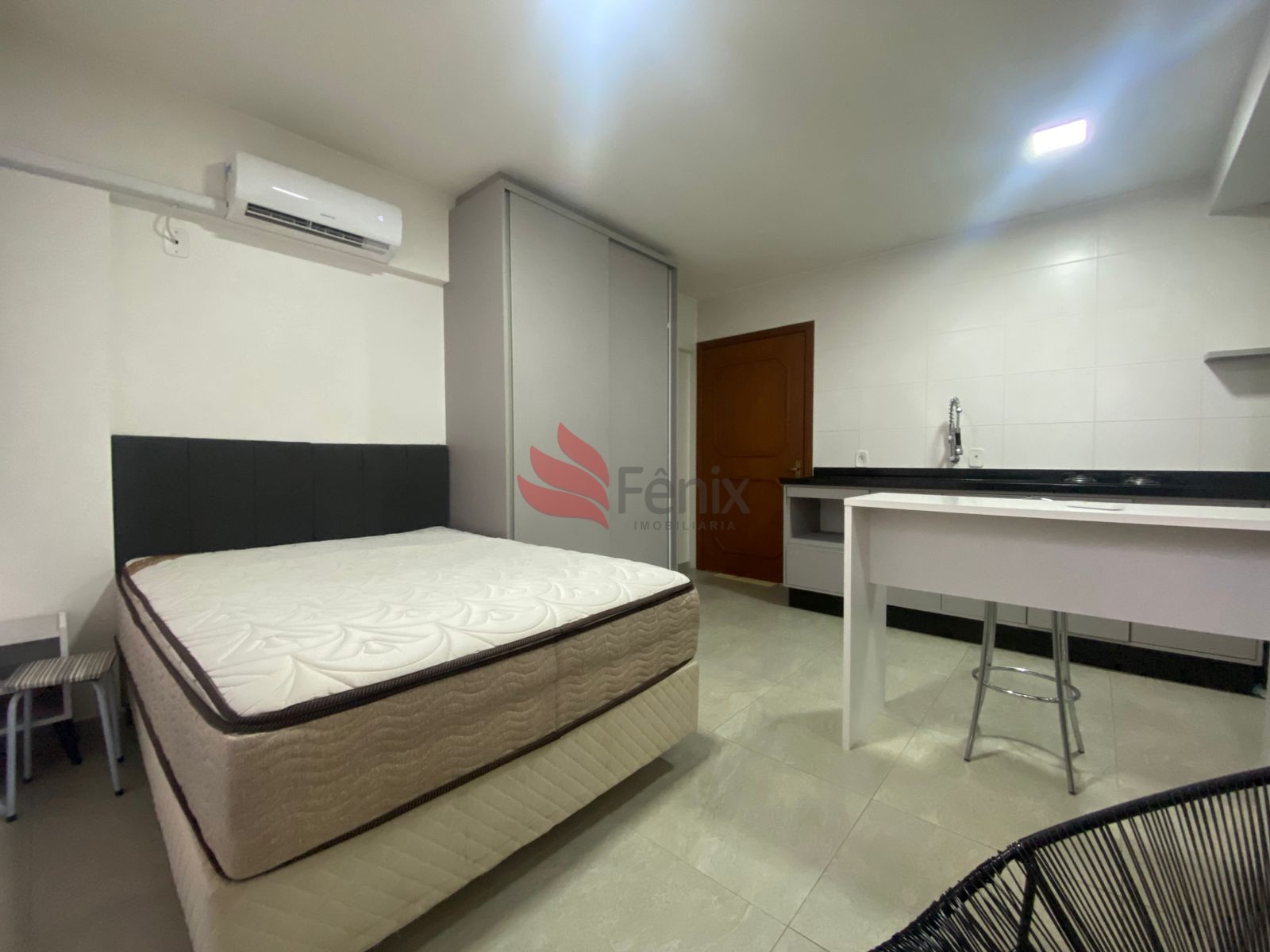 Interfone, Zelador, 1 Dormitório, Cozinha, 1 Banheiro, 1 Ar Condicionado, Piso porcelanato, Elevador, Gás Central, Mobiliada(o), Posição Solar norte, De Frente, Área privativa: 33,75 m², Área total: 33,75 m².Detalhes do Imóvel