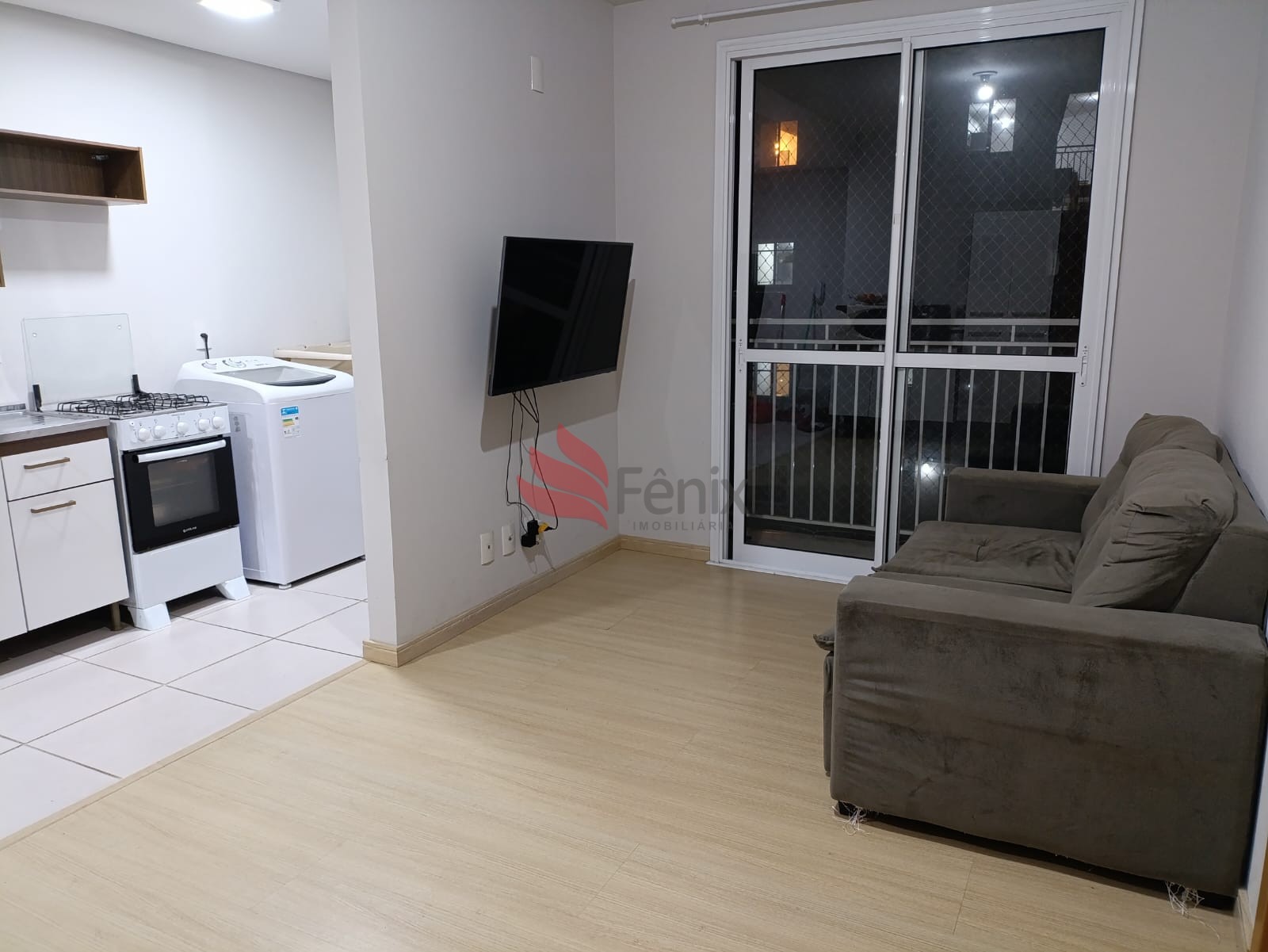 Cozinha / Área Serviço, Sacada / sala de estar, Sala 2 ambientes, Zelador, 2 Dormitórios, 1 Box / Garagem, 1 Banheiro, Piso ceramica, laminado, Rebaixe de Gesso, Gás Central, Salão de Festas, Play Ground, Portão Eletrônico, Posição Solar norte, Área privativa: 55,36 m², Área total: 55,36 m².Detalhes do Imóvel