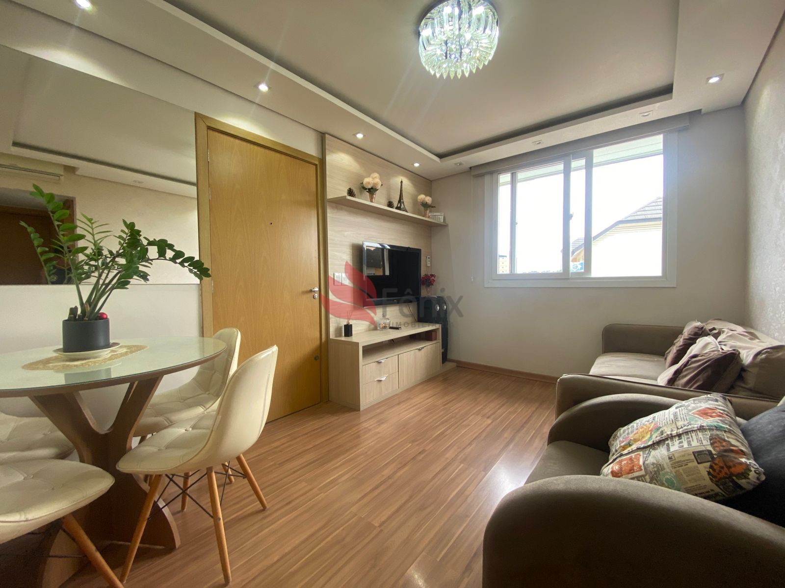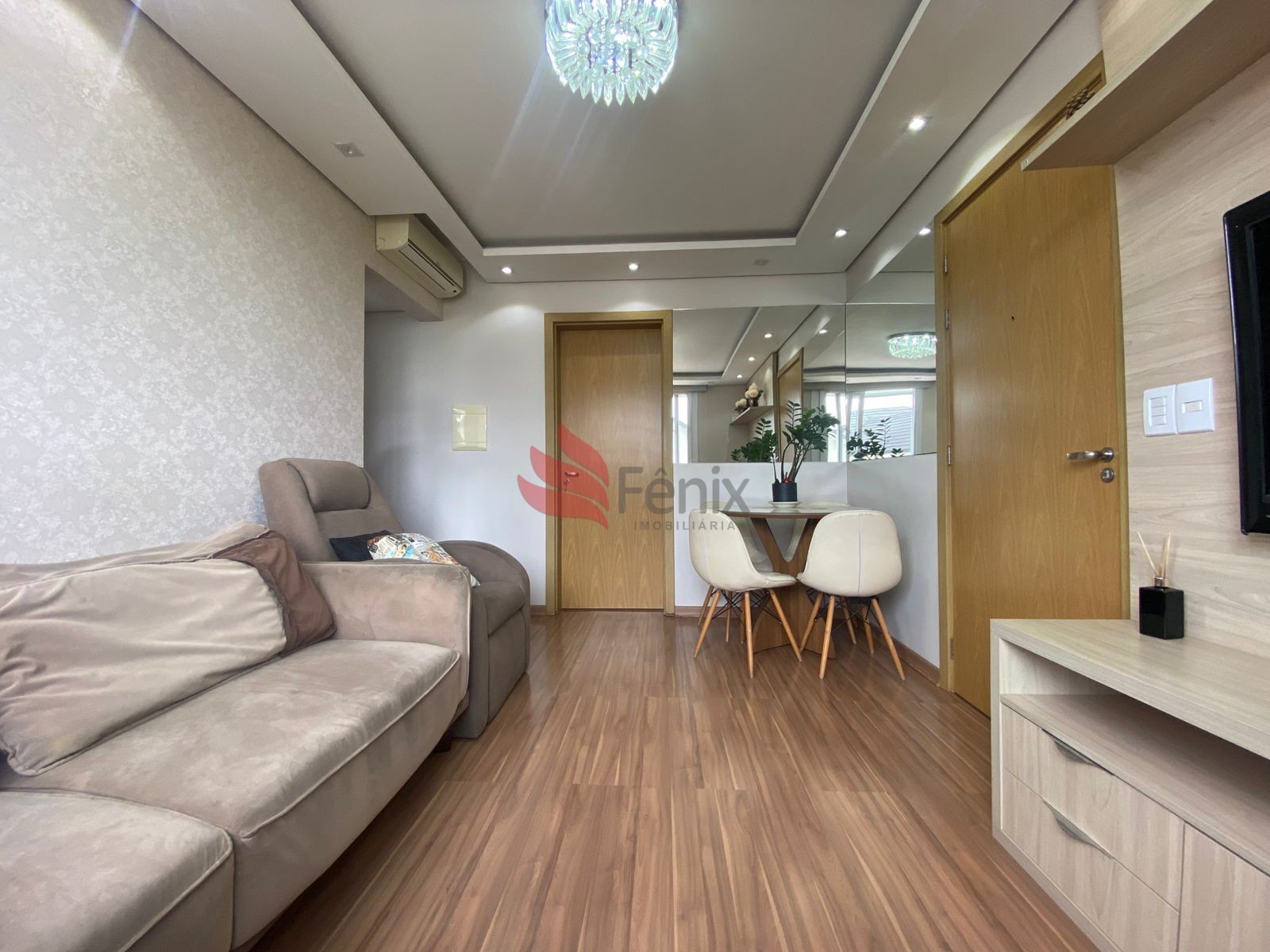 Cozinha / Área Serviço, Sala 2 ambientes, Interfone, Portaria 24 Hrs, Zelador, 2 Dormitórios, 1 Box / Garagem, 1 Banheiro, 3 Ares Condicionados, Piso Laminado e Cerâmica, Rebaixe de Gesso, Piscina, Gás Central, Mobiliada(o), Proximidades Fácil acesso a RS-239, Salão de Festas, Play Ground, Quadra Poliesportiva, Portão Eletrônico, Posição Solar Sul, De Fundos, Área privativa: 58,38 m², Área total: 58,38 m².Detalhes do Imóvel