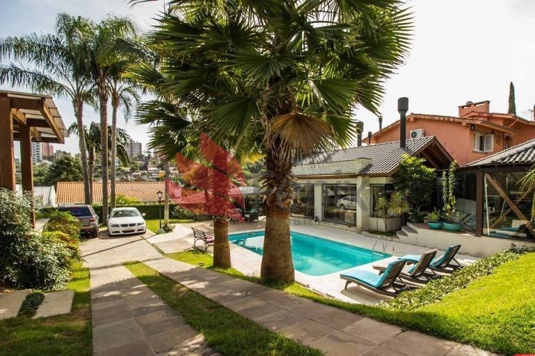 Casa para família que busca espaço, privacidade e segurança! Com 5 dormitórios, sendo 1 suíte master com sacada, closet e banheira com hidromassagem, sala dois ambientes com ampla área envidraçada permitindo a entrada de luz natural, lareira, estar íntimo, salão de festas com espaço gourmet e forno de pizza, academia, 4 banheiros, área de serviço, garagem coberta para 2 carros, piscina aquecida, ficam todos os móveis sob medida e split.Detalhes do Imóvel
